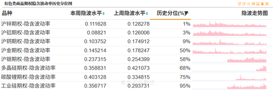 具体来看,部分工业金属,图中可以清晰观察到:在经历7月底至8月初的宏观因素冲击后,隐含波动率曾短暂回升至近年历史均值水平,但随后便快速回落,目前已跌破近三年最低值并持续在低位区间震荡。