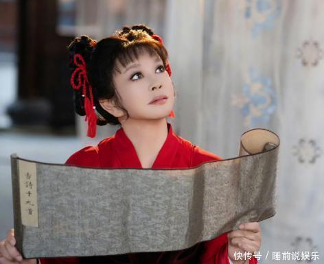 镜头对着刘晓庆,她身穿一袭红色齐胸裙,梳着可爱的发型,可是那神态完全不像14岁的武媚娘,反倒多了几分成熟和稳重,少了一点儿稚气。