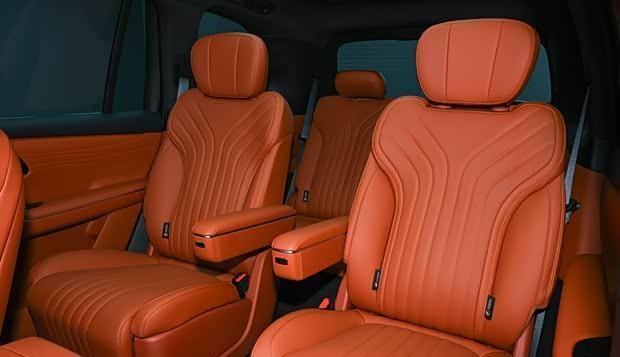外观方面,新车采用封闭式前脸设计,搭配贯穿式LED日间行车灯。前包围两侧设有T字形散热口,中央为梯形主动格栅,车顶配备激光雷达装置。侧面采用标准大型SUV造型,银色窗框装饰搭配传统门把手与大尺寸轮圈。车尾配备扰流板与大面积贯穿式尾灯,后包围采用镀铬装饰并呈现双边双出排气造型。