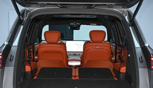 空间布局采用6座设计,第二排为独立航空座椅,台阶高度470mm便于上下车。座椅配备无缝腿托、腰托及通风加热按摩功能,配备17.3英寸吸顶屏。二三排纯平地板设计,过道宽度180mm,后备箱容积6座状态下为328L,最大可扩展至2171L。