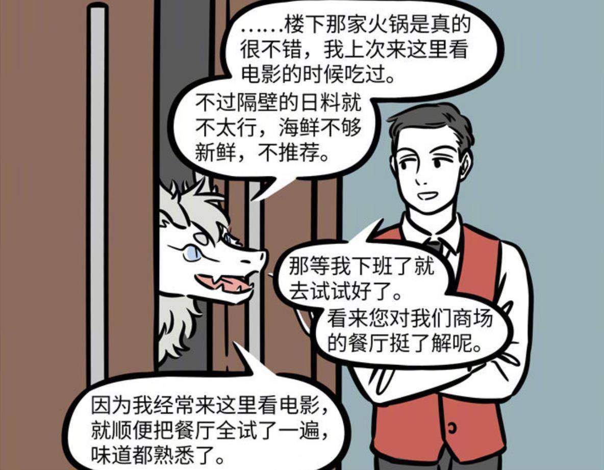 他会选择和电影院工作人员聊天,比如向工作人员安利商场的火锅店,还顺便介绍了火锅店隔壁的日料店。