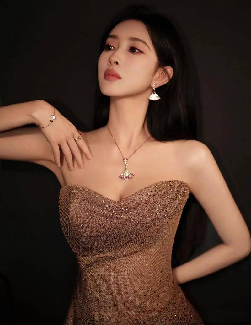 孟子义穿着肉色抹胸裙,她俏脸清丽,长发飘逸,她单手撩起来,露出白皙的香肩和事业线,大秀自己魔鬼身材,绝对性感火辣!